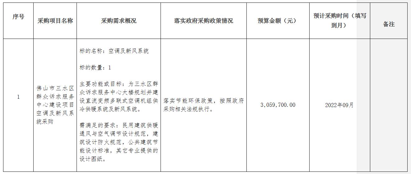 为便于供应商及时了解政府采购信息,根据《财政部关于开展政府采购意向公开工作的通知》(财库〔2020〕10号)等有关规定,现将中共佛山市三水区委政法委员会2022年07月至2022年09月采购意向公开如下: