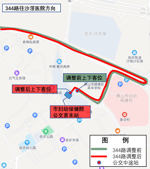 344路现临停于市妇幼保健院公交首末站旁边,保持该线路路由不变,由路边临停改为场内中转发车。