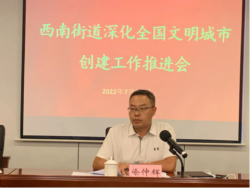 7月31日下午,西南街道召开深化全国文明城市创建工作推进会,会议要求全街道上下务必进一步提高政治站位,全面落实市、区、街道会议精神,聚焦重点、难点、薄弱点,着力补齐工作短板,以最足的准备、最佳的状态、最高的水平迎接创文国检工作。