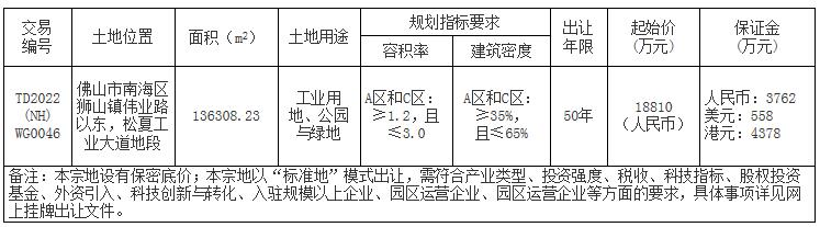 八、自本次公告起至网上挂牌截止期间,如有关于本宗地竞买文件的修改、澄清、说明等将通过网上交易系统以及佛山市南海区人民政府网发布,请有意参与竞买者密切留意。其它未尽事宜,详见本宗地的网上挂牌出让文件。