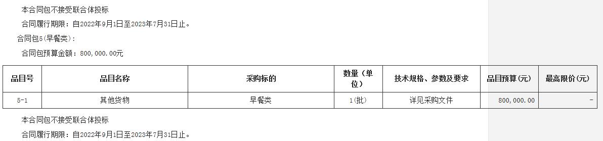 合同包5(早餐类)落实政府采购政策需满足的资格要求如下: