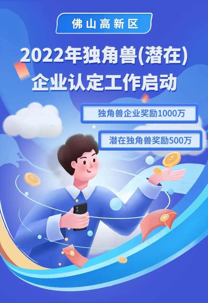 为进一步培育新经济新模式,打造佛山高新区经济发展新引擎,2022年度佛山高新区独角兽(潜在)企业认定工作将于8月10日启动。获得佛山高新区独角兽(潜在)企业认定的企业,分别给予潜在独角兽500万、独角兽企业1000万奖励。