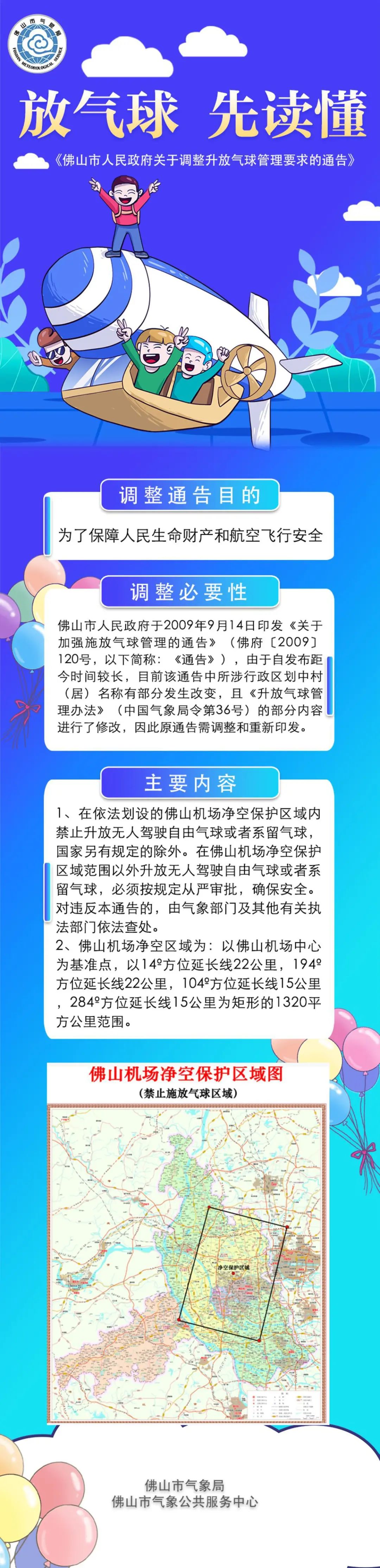 《通告》明确,在依法划设的佛山机场净空保护区域内禁止升放无人驾驶自由气球或系留气球,国家另有规定的除外。在佛山机场净空保护区域范围以外升放无人驾驶自由气球或者系留气球,必须按照规定从严审批,确保安全。对违反本通告的,由气象部门及其他有关执法部门依法查处。