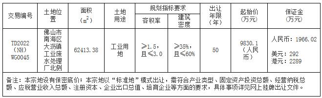 八、自本次公告起至网上挂牌截止期间,如有关于本宗地竞买文件的修改、澄清、说明等将通过网上交易系统以及佛山市南海区人民政府网发布,请有意参与竞买者密切留意。其它未尽事宜,详见本宗地的网上挂牌出让文件。