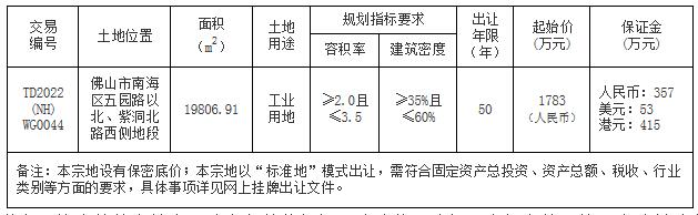 经佛山市人民政府批准,佛山市自然资源局决定委托佛山市公共资源交易中心南海分中心采用网上挂牌方式出让下列地块的国有建设用地使用权。现将有关事项公告如下: