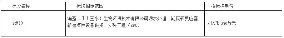 本招标项目瀚蓝(佛山三水)生物环保技术有限公司污水处理二期厌氧反应器新建项目设备供货、安装工程(EPC)已由项目主管部门批准招标,招标人为瀚蓝(佛山三水)生物环保技术有限公司,资金来自企业自筹。项目已具备招标条件,现对该项目进行公开招标。