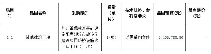 项目名称:九江镇儒林湾基础设施配套部分市政设施建设项目路桥设施改造工程(二次)