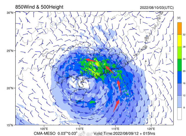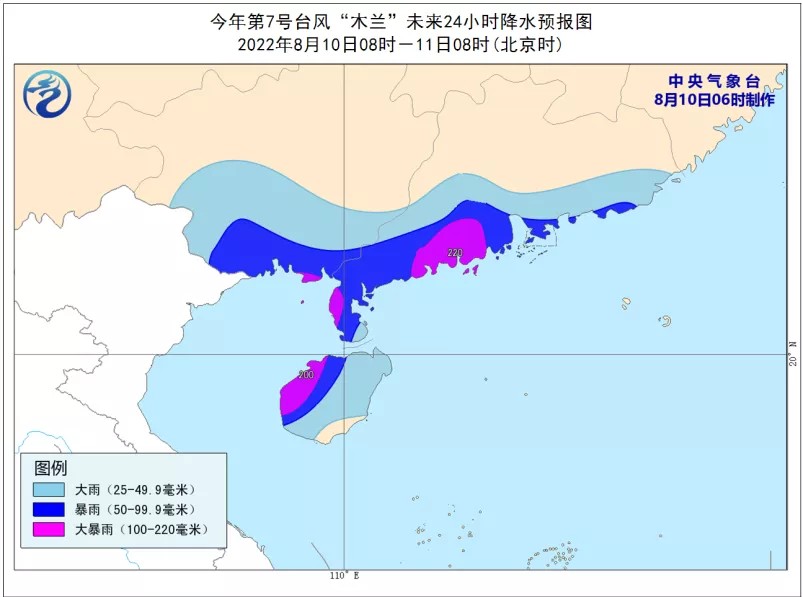 台风“木兰”结构松散,环流庞大,风雨主要在外围(特别是其右侧),因此,将于8月10~11日给广东带来明显风雨。