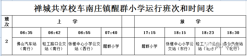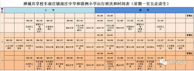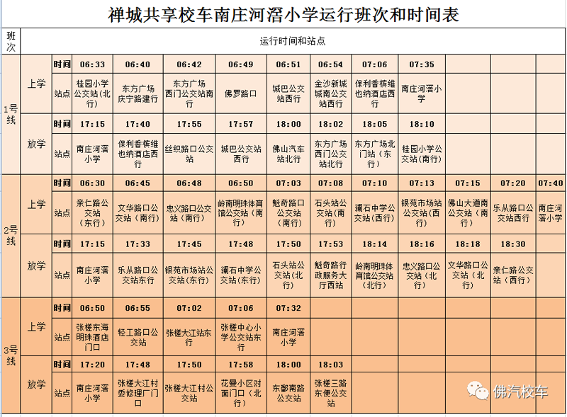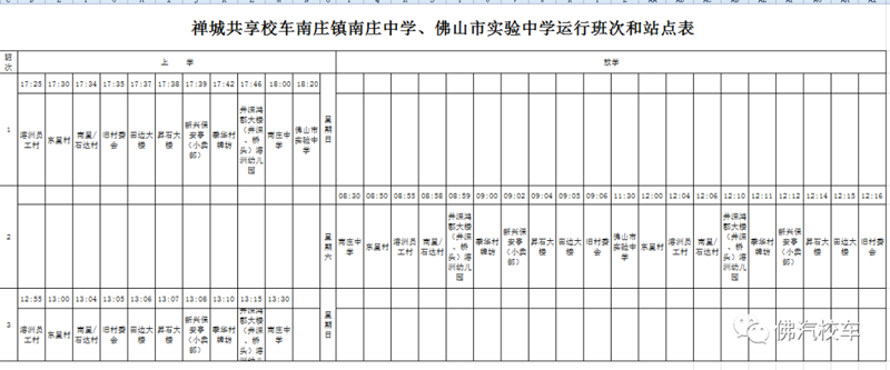溶洲小学、南庄中学、佛山市实验学校运行班次和站点表