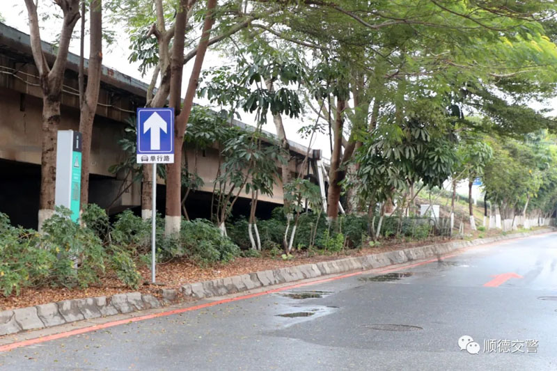 同时该掉头通道桥底路段设有两个掉头位,限高分别为3.3米和4.3米,超高车辆可直行通过百丈大桥往杏坛方向选择路口掉头。