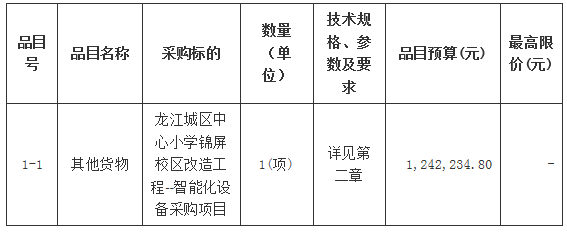 龙江城区中心小学锦屏校区改造工程--智能化设备采购项目采购项目的潜在供应商应在广东省政府采购网https://gdgpo.czt.gd.gov.cn/获取采购文件,并于 2022年8月18日 9时30分(北京时间)前提交响应文件。