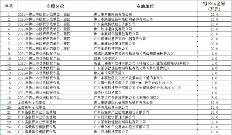 拟资助2021年度佛山市