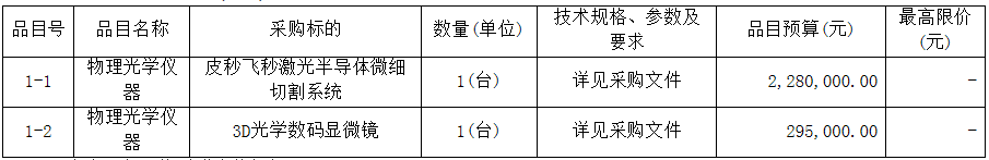 皮秒飞秒激光半导体微细切割系统、3D光学数码显微镜招标项目的潜在投标人应在广东省政府采购网https://gdgpo.czt.gd.gov.cn/获取招标文件,并于2022年08月29日09时30分(北京时间)前递交投标文件。