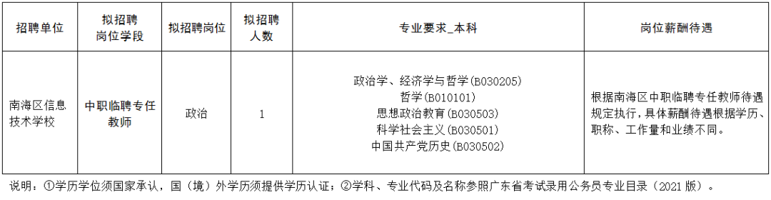 根据学校工作需要,佛山市南海区信息技术学校拟招聘中职思政学科临聘专任教师1名。现作公告如下: