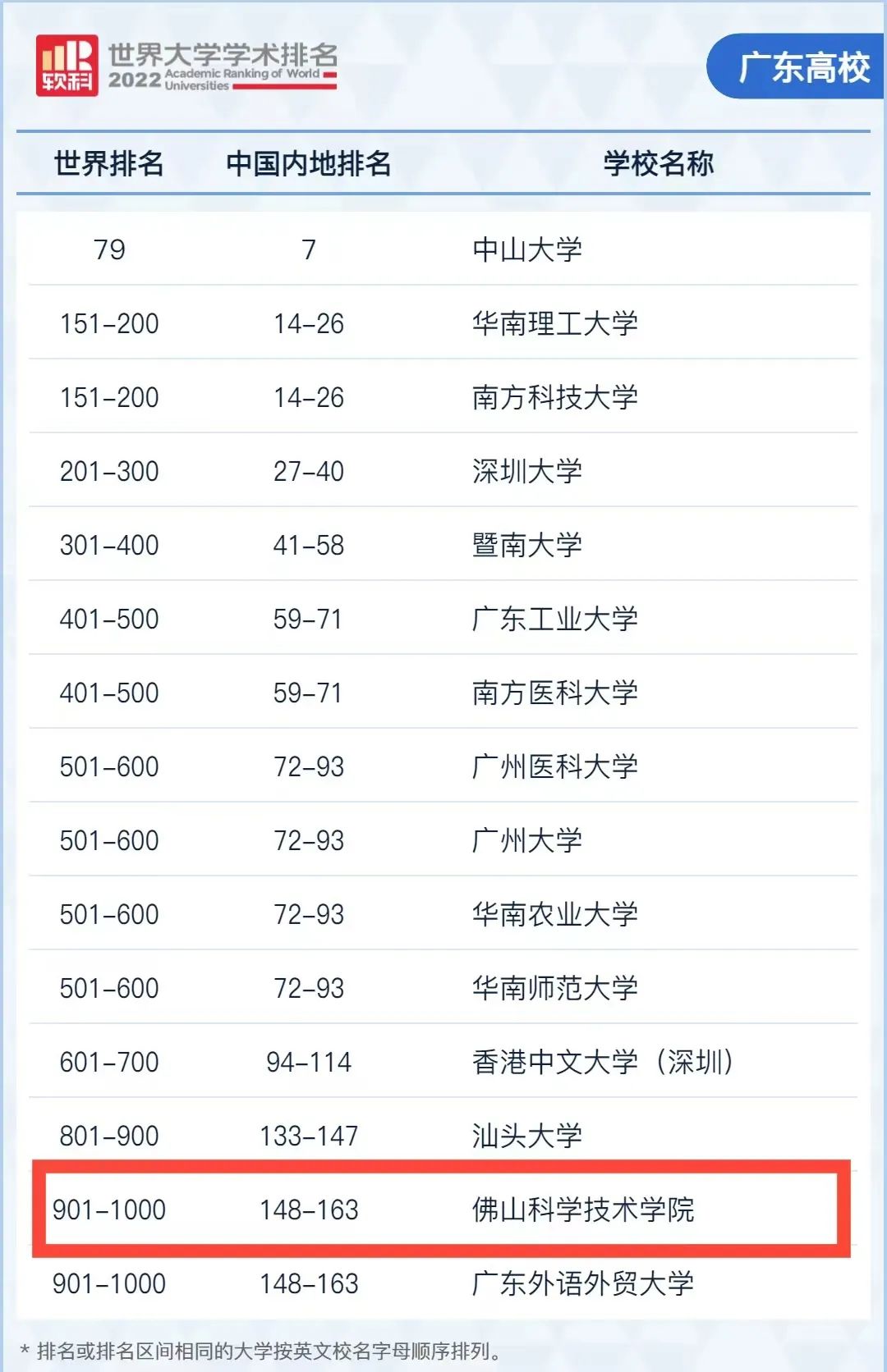 佛山科学技术学院位列世界第901-1000位,内地第148-163位,继2021年之后再次跻身软科世界大学学术排名1000强。