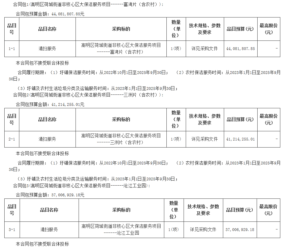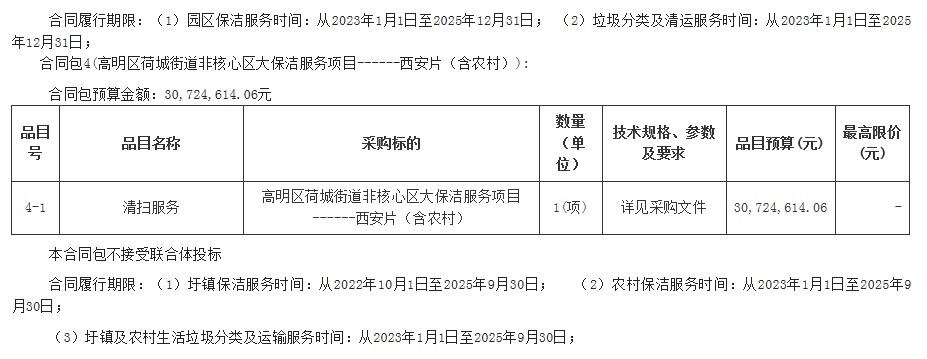 高明区荷城街道非核心区2022年至2025年大保洁服务项目招标公告
