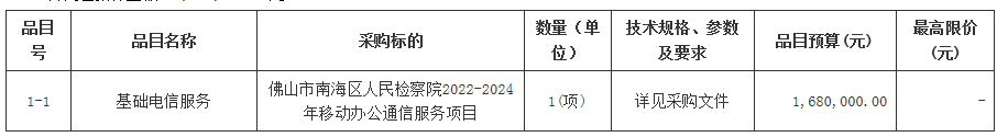 佛山市南海区人民检察院2022-2024年移动办公通信服务项目采购公告