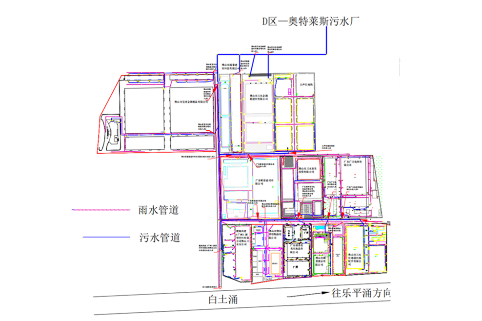 园区内共涉及16个排水单元,原排水体系为合流制,过往园区生活污水长期溢流排放旁边的白土涌,对河涌水质影响较大。