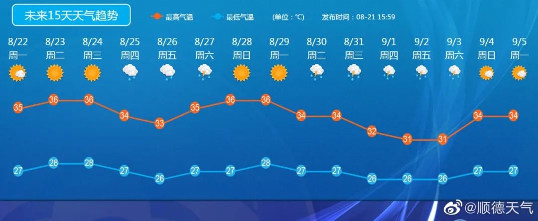 8月27日:多云,有雷阵雨,气温27~35℃;