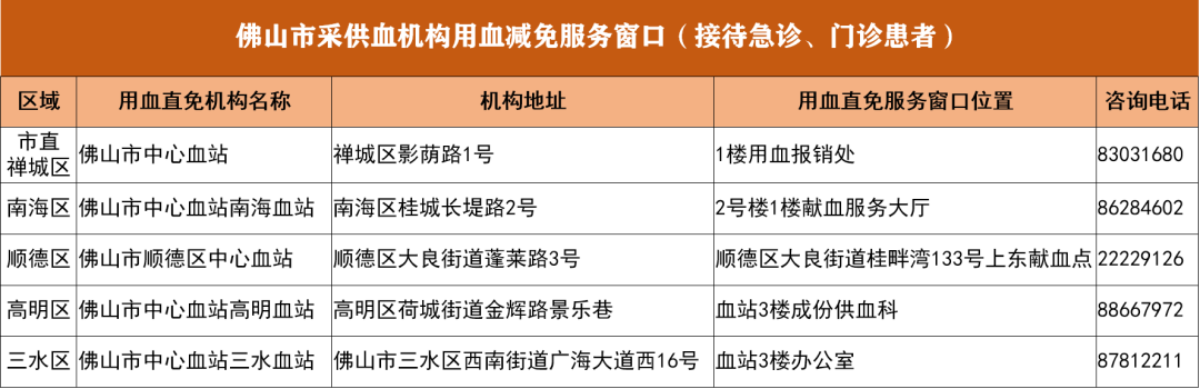 佛山血站:如果在还没有使用广东省医院用血直免联网管理平台的医院住院的话,可以先在医院结算,然后在我省内选择一家您觉得方便的血站办理用血费用的减免手续。我省的采供血机构已使用广东省医院用血直免联网管理平台,所以在省内任何一家采供血机构减免用血费用都一样的。我市各血站的用血减免窗口信息如下表所示。