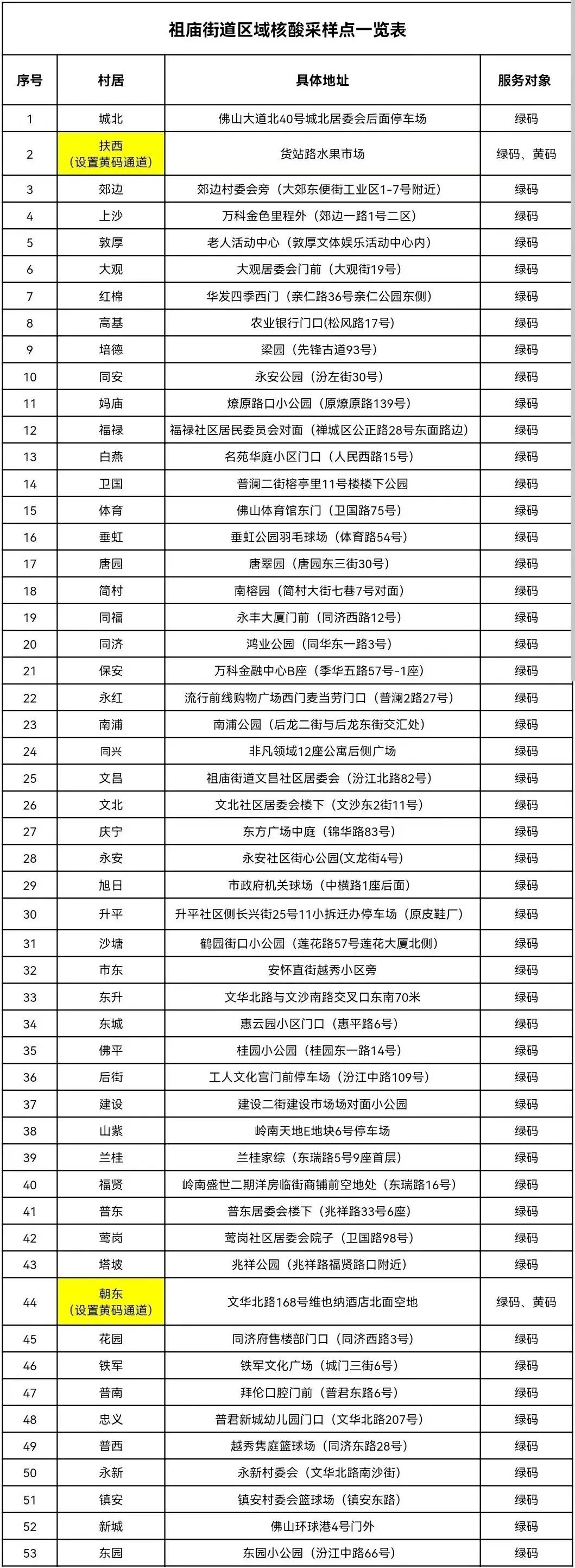 设置2个黄码通道:扶西核酸检测点(货站路水果市场)、朝东核酸检测点(文华北路168号维也纳酒店北面空地)。其他核酸检测点不设置黄码通道,不接受黄码人员参加检测。