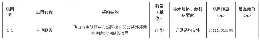 项目名称:佛山市高明区中心城区核心区公共外环境除四害承包服务项目