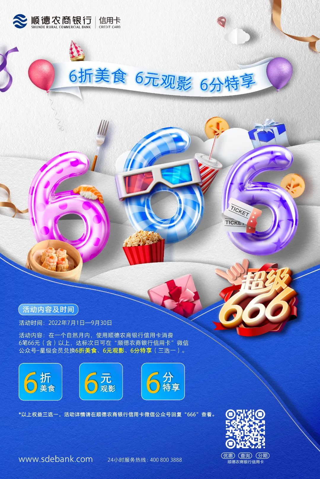 7月1日起,持农商行信用卡每月消费满6笔66元(含)以上,达标次日可登录信用卡公众号参加6折美食活动等。