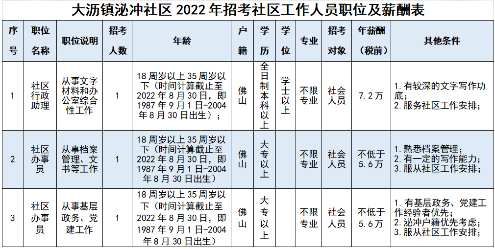 南海大沥泌冲社区招聘工作人员