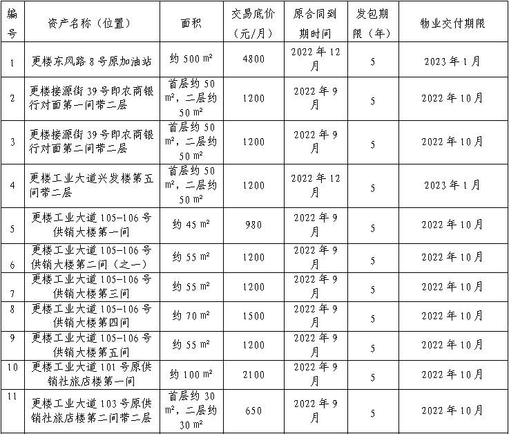 以上资产按现状出租,水电需由中标人自行开通。报名投标者无拖欠供销社铺租金和住房租金(含占用房屋)以及往年承包欠款的才可以投标承租,中标承租者经营期间不得私自转让。