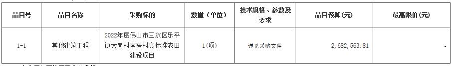 项目名称:2022年度佛山市三水区乐平镇大岗村南联村高标准农田建设项目