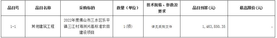 项目名称:2022年度佛山市三水区乐平镇三江村海洲片高标准农田建设项目