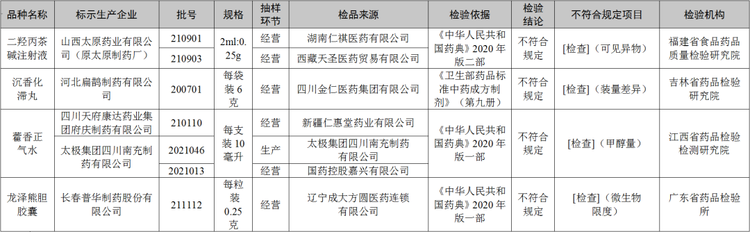 ● 经广东省药品检验所检验,标示为长春普华制药股份有限公司生产的1批次龙泽熊胆胶囊不符合规定,不符合规定项目为微生物限度。