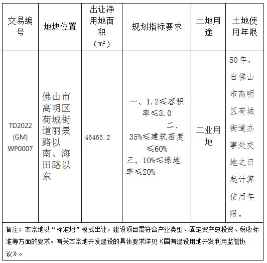 五、有意参与竞买者可于2022年8月26日后登录网上交易系统下载该地块的《佛山市高明区国有建设用地使用权网上挂牌出让文件》。