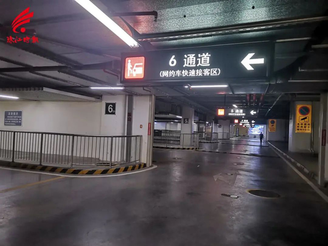 旅客进入网约车接客区入口。