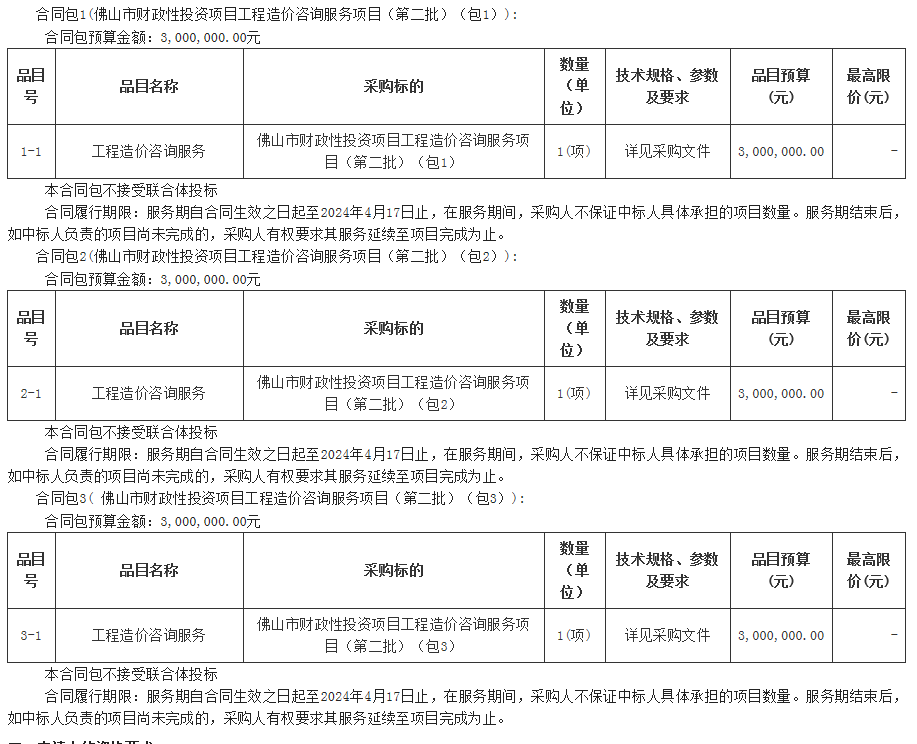 (3)“佛山市财政性投资项目工程造价咨询服务项目”(项目编号:440601-2022-00738、0809-2241FSG3A211)已签订合同的服务单位不可以参加本项目的投标。