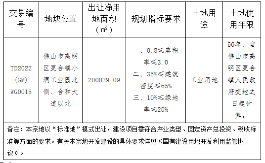 五、有意参与竞买者可于2022年8月31日后登录网上交易系统下载该地块的《佛山市高明区国有建设用地使用权网上挂牌出让文件》。