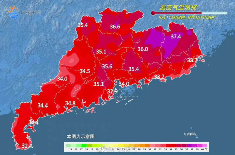 11-13日,粤西市县有分散(雷)雨;气温总体平稳,大部市县介于31℃~35℃,其中,中东部的部分市县36℃~37℃。