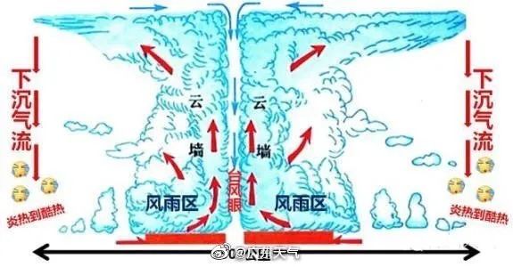 台风中心附近的强烈上升运动将气流抬升到高层,并在外围下沉。通俗地说,就是吹空调外机,“热气”呼呼吹。