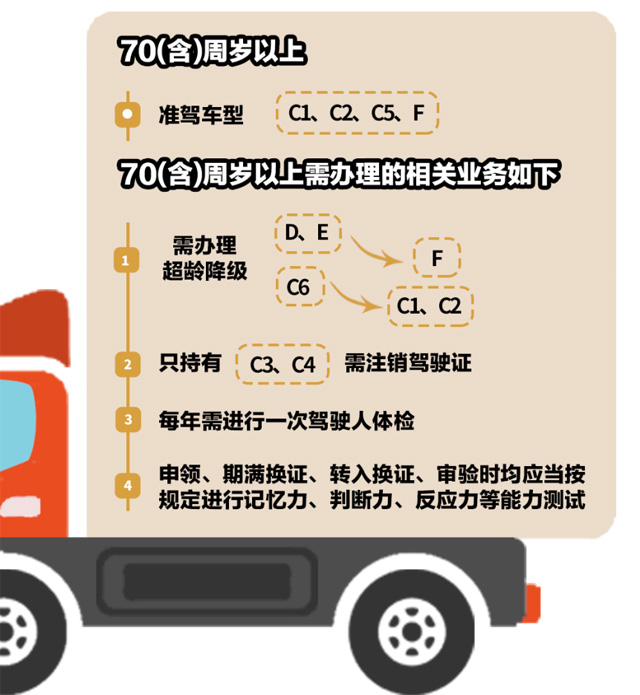 ✍年龄在70周岁以上,申请期满换证、转入换证等业务时。