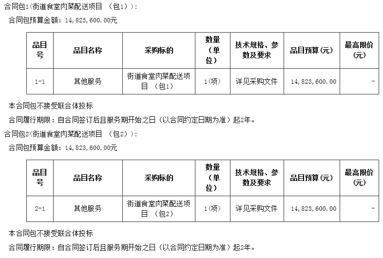 合同包2(街道食堂肉菜配送项目 (包2))特定资格要求如下: