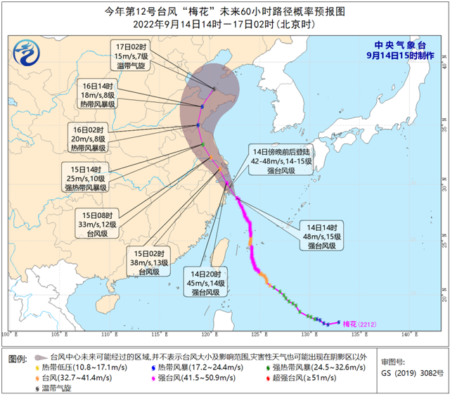 鉴于台风“梅花”将严重影响我国,中央气象台9月14日10时发布台风红色预警,成为今年第一个将以强台风强度登陆我国的台风,国家防总于13日12时将防汛防台风四级应急响应提升至三级,并对台风防御工作作出安排部署。