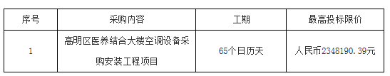 二、 采购项目名称:高明区医养结合大楼空调设备采购安装工程项目(第二次)