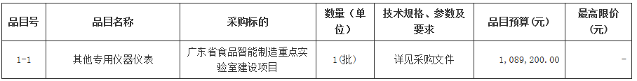 广东省食品智能制造重点实验室建设项目(三次)采购公告