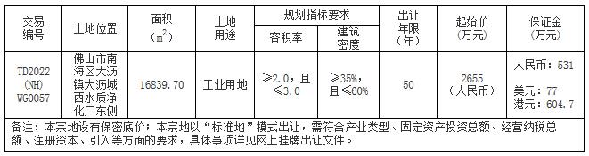 佛山市南海区国有建设用地使用权网上挂牌出让公告