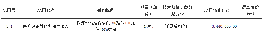 项目名称:医疗设备维修全保+MR维保+CT维保+DSA维保(二次)