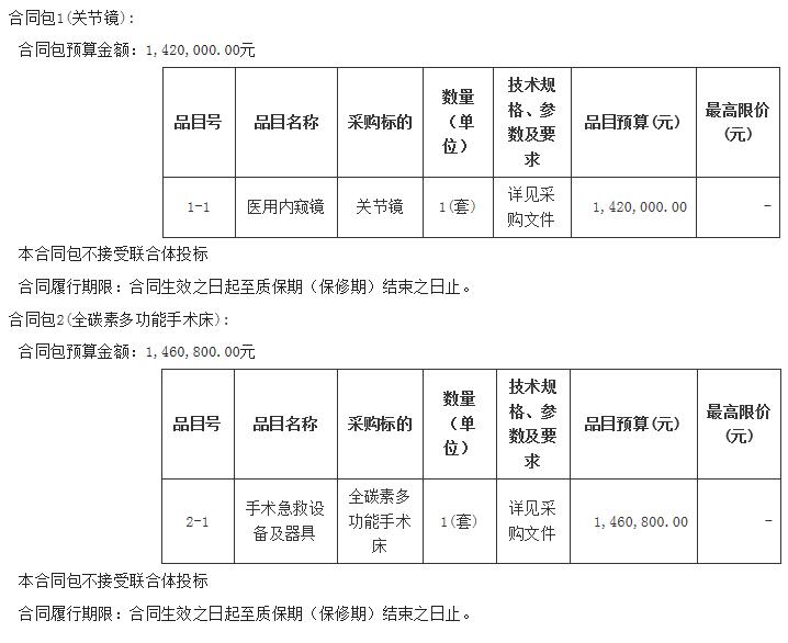 项目名称:佛山市高明区中医院关节镜及全碳素多功能手术床采购项目