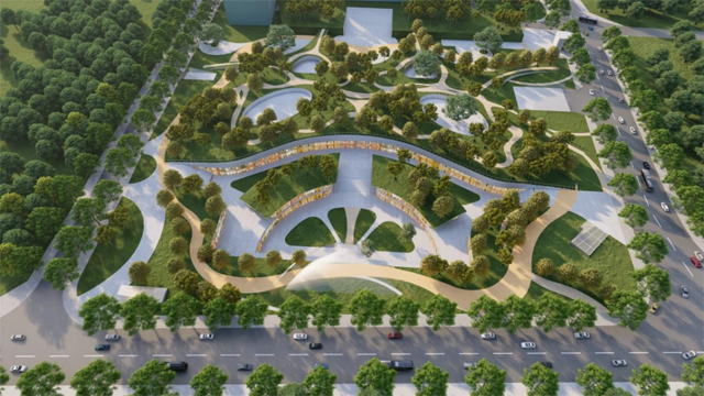以凤尾为设计语言,打造从凤岭山到钟楼公园的城市绿洲。