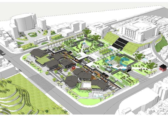 方案拟承续岭南园林“前厅后院”的经典格局,打造“半亩商街半亩庭院”,连通城市文化发展带和市民活动轴。建筑风格提取清晖建筑元素,植入特色商业等业态,打造清晖文旅街区;景观设计凸显岭南建筑园林的现代演绎,以廊亭围合空间,内外景观互为借景,打造商业的立体绿化。