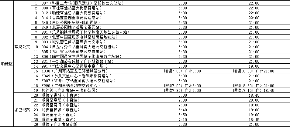 佛山市交通运输局关于恢复跨市、跨区公交和城巴线路运营的通告