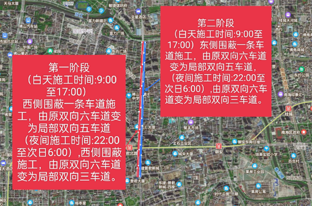 禅城区市东路(文庆大桥至卫国路)9月30日起将进行阶段性节点临时占道围蔽施工